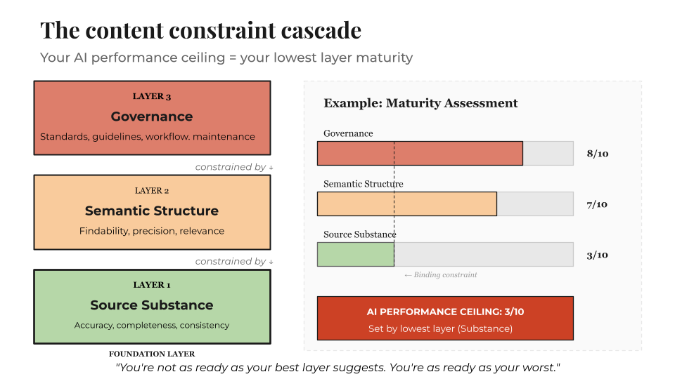 This is where content architecture and knowledge engineering live. But this work presupposes that the substance layer is already sound.